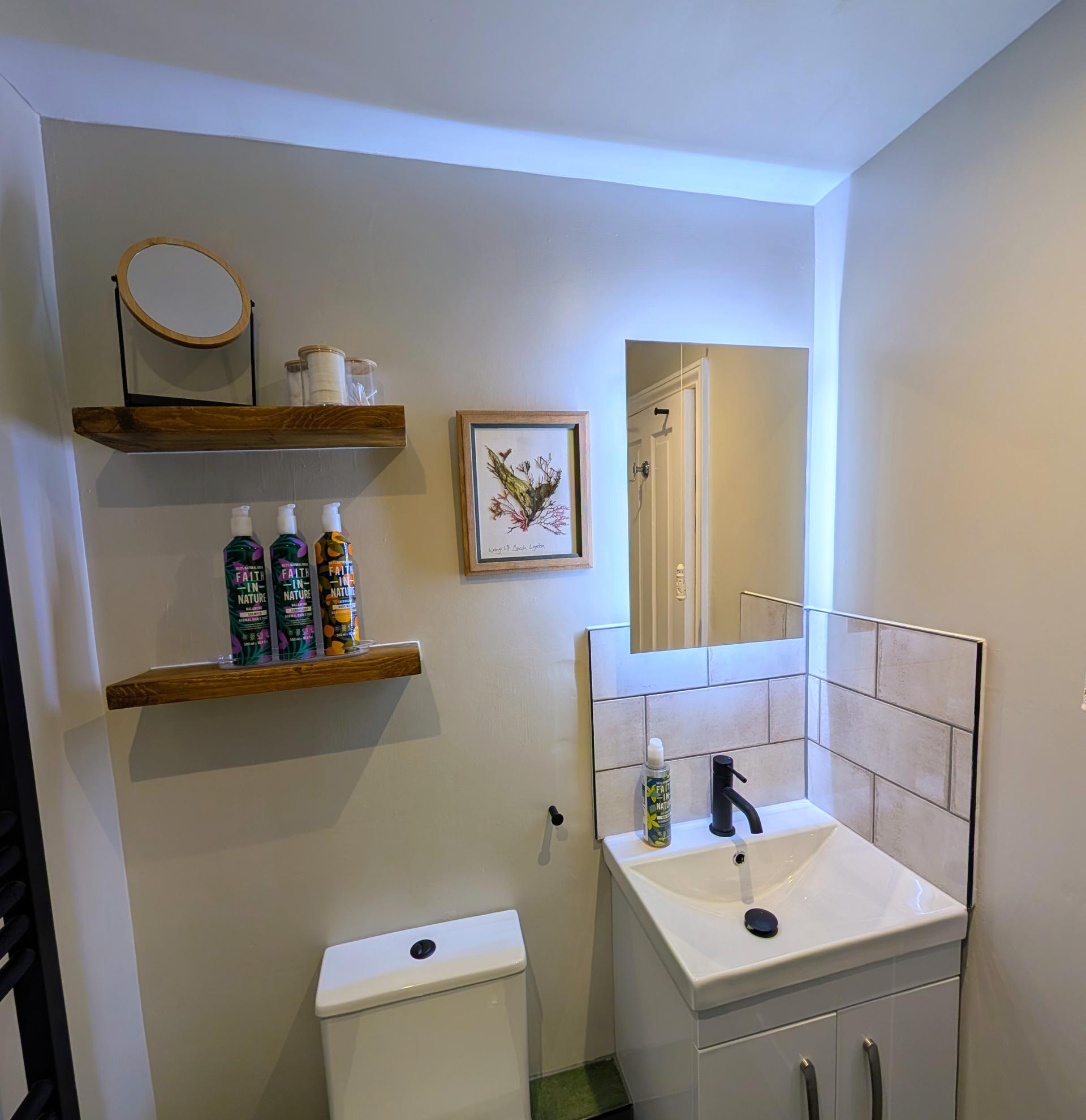There is a kingsize bed, an ensuite bathroom with full size toiletries from Faith In Nature, a welcome tray, hairdryer. There's also a 32" smart TV with Freeview and access to Netflix and BBC Iplayer. This room is on the first floor.