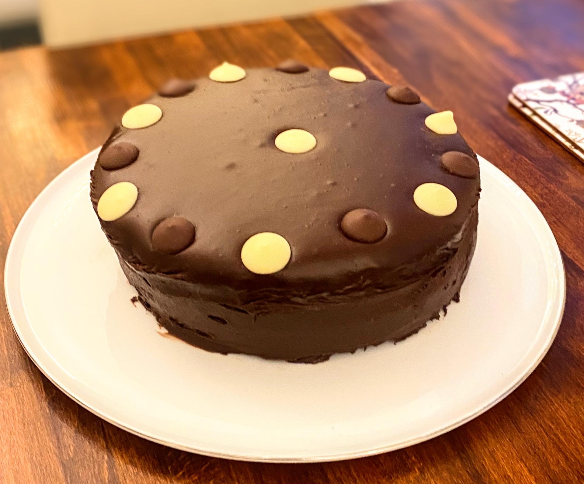 You can order one of Jacqui's delicious homemade cakes, like this one - a rich chocolate fudge cake. This is an 8" chocolate cake, filled and covered with a chocolate fudge icing - wonderful! This is £15 - please order a week in advance.